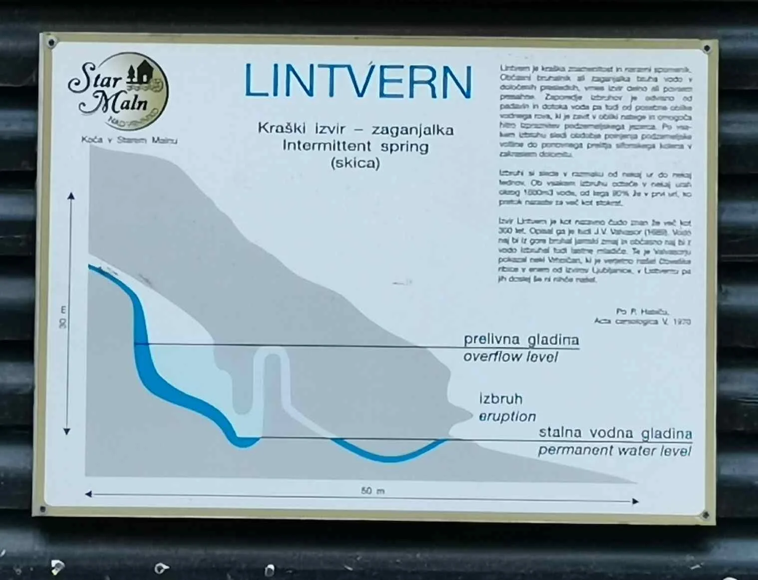 S planinskim pohodom bomo pričeli na manjšem parkirišču na zahodnem koncu Vrhnike 350m. Ter se peš podali po makadamski cesti ob potoku Bela do Starega Mlina 400m, 4km. Od tu se dvignemo v strm klanec in v strmo pobočje proti presihajočem izviru – bruhalniku Lintver 550m. ( Derezice! )