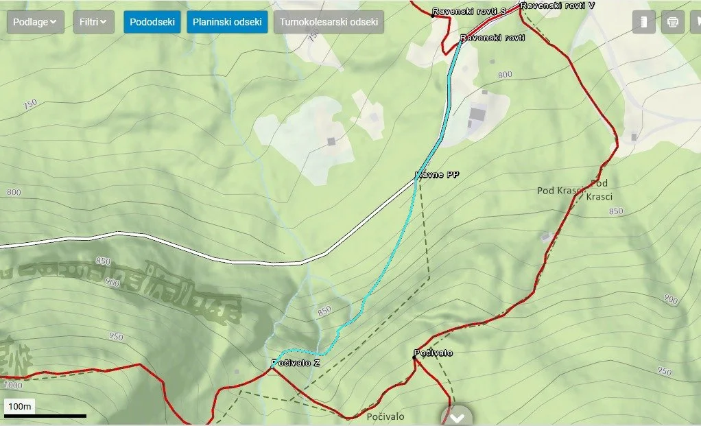 D12-10/4-12-2025: IO KPP potrjuje odprtje novega odseka Ravenski rovti–Ravne PP–Počivalo Z (pododsek ID 26474, 26473). (turkizna črta na karti)